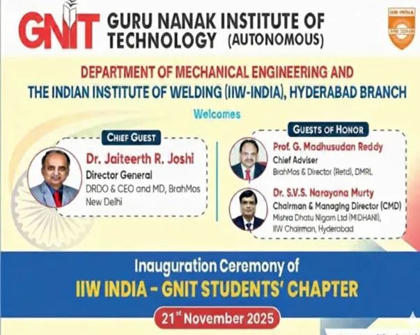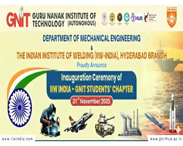 The Department of Mechanical Engineering, Guru Nanak Institute of Technology (Autonomous), in association with the Indian Institute of Welding (IIW–India), Hyderabad Branch, proudly organized the Inauguration Ceremony of the IIW India – GNIT Students’ Chapter on 21st November 2025.